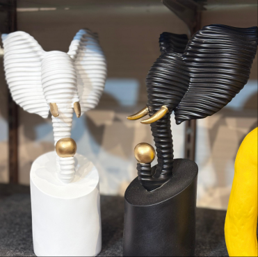Add a bold artistic touch to your d├йcor with this elegant elephant head sculpture set, showcasing a unique ribbed texture in black and white finishes with gold accents. Crafted from premium-quality resin, these sculptures symbolize wisdom and strengthтАФperfect for modern homes, offices, or gifting.