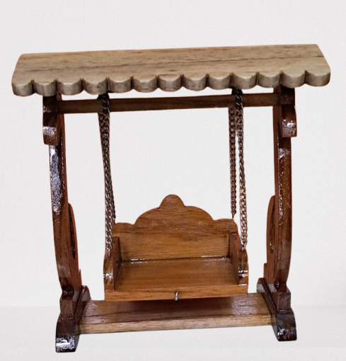 Add a touch of traditional Indian artistry and charm to your d├йcor with this exquisitely handcrafted wooden miniature swing, or Jhula. This detailed showpiece is made from high-quality wood, featuring a classic swing design supported by elegantly curved side pillars.
